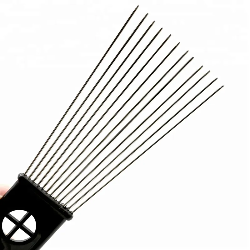 Afro Hair Pick Comb is made of high quality steel, durable for long term use. Hair comb with long teeth, non-slip handle. Great for detangling, extra wide spaced teeth for long, thick, tangled hair.