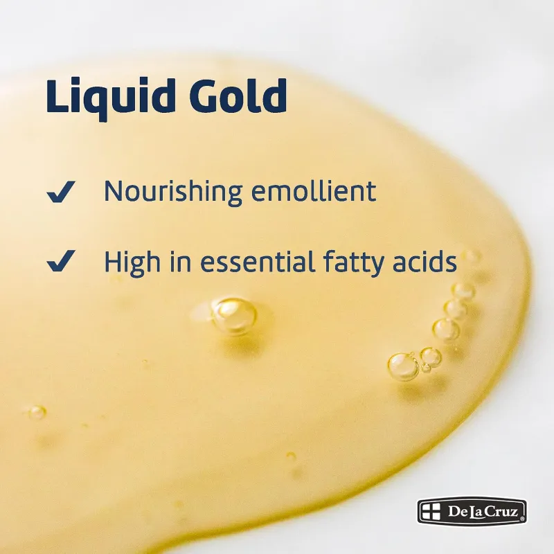 De La Cruz 100% Pure and Natural Virgin Argan Oil is cold-pressed from the kernels from Argan fruits sourced directly from sunny Morocco. This traditional “liquid gold” is a nourishing emollient high in oleic, linoleic and palmitic essential fatty acids that will help to build the skin’s natural oil barrier, meaning hydrated, supple and soft skin.Argan oil absorbs quickly into the skin and doesn’t clog pores and thus works well for sensitive skin too. We love to use Argan oil as a hair treatment as well.