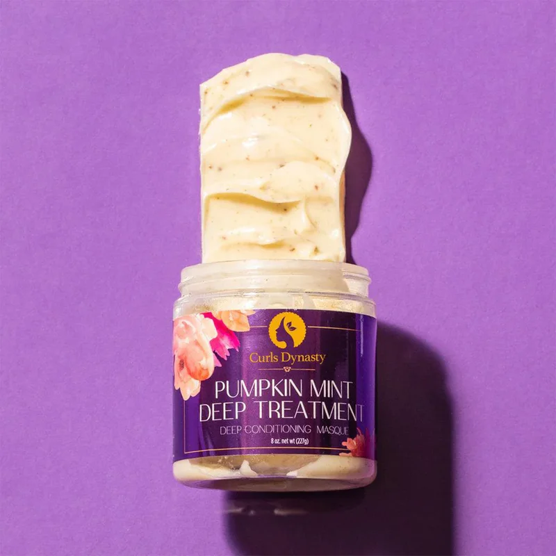 Curls Dynasty Pumpkin Mint Deep Treatment Masque is designed to directly penetrate the hair shaft delivering all-natural vitamins, nutrients, and antioxidants for stronger, healthier hair. The pumpkin and mint complex help to replenish dry and brittle strands while restoring hair elasticity.