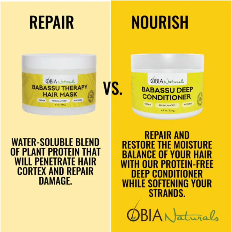 OBIA Naturals Babassu Deep Conditioner Immerse your curls and kinks in this deeply penetrating, fortifying protein-free treatment that repairs and reconstructs all hair textures and hair types. Strand-strengthening Babassu oil will nourish, repair elasticity, soften and add shine to your hair. Our moisturizing blend of Avocado Oil, Rosemary Essential Oil and Panthenol will repair the damaged hair.