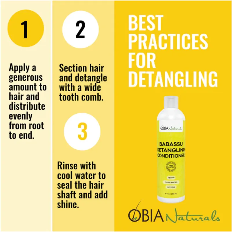 OBIA Naturals Babassu Detangling Conditioner detangles your hair with ease and condition your hair with moisturizing Babassu Oil, Avocado Oil, and Rosemary Essential Oil. Strand-strengthening Babassu Oil will nourish, repair elasticity, soften and add shine to your hair. Avocado Oil, Rosemary Essential Oil, and Panthenol will repair damage and moisturize your hair. Can be used as needed without worrying about protein buildup.