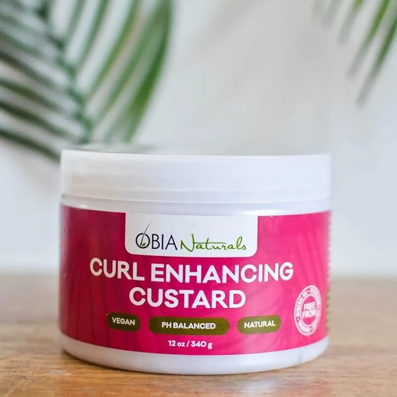 OBIA Naturals Curl Enhancing Custard Style your hair with this oil-enriched, alcohol-free, and lightweight custard. This pH-balanced formula is packed with antioxidant-rich Argan Oil, Olive Oil, and Grapeseed Oil that will leave your hair soft, shiny, and deeply moisturized. Perfect of wash n’ go’s, up-do’s, finger coils, and smoothing edges. Safe for use on color-treated hair.