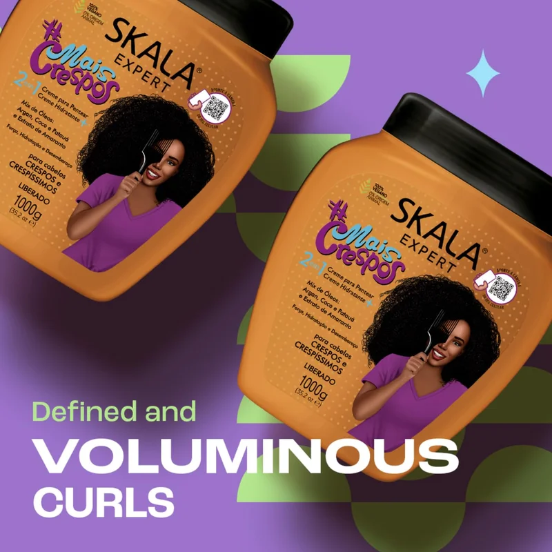 SKALA Mais Crespos Hair Treatment Cream product line has been specially formulated for those seeking an ally for achieving that impressive volume! It’s the perfect blend of ingredients designed to strengthen, shine, hydrate, and detangle super curly and coily hair.
