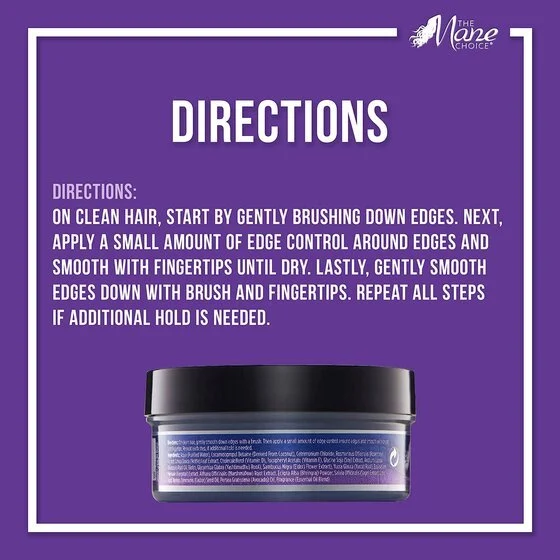 On clean hair, start by gently brushing down edges. Next, apply a small amount of edge control around edges and smooth with fingertips until dry. Lastly, gently smooth edges down with brush and fingertips.