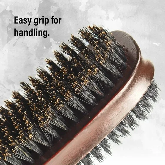 Titan Double Sided wave Brush is two brushes in one that offers men /Women several benefits for grooming that support healthy, lustrous, tangle-free hair. It is uniquely built with stiff nylon reinforced boar bristles on one side and medium boar bristles on the other. This hairbrush’s cutting-edge implantation technology minimizes bristle loss while being kind to delicate scalps. It’s excellent for detangling everyday hair, creating and sustaining wave styles, and smoothing medium to coarse hair. Boar hair has a texture that is almost equal to that of human hair, which has numerous positive effects on your hair and scalp. The use of a boar bristle brush may aid in promoting hair development by gently massaging the scalp, boosting blood flow, and unclogging hair follicles.