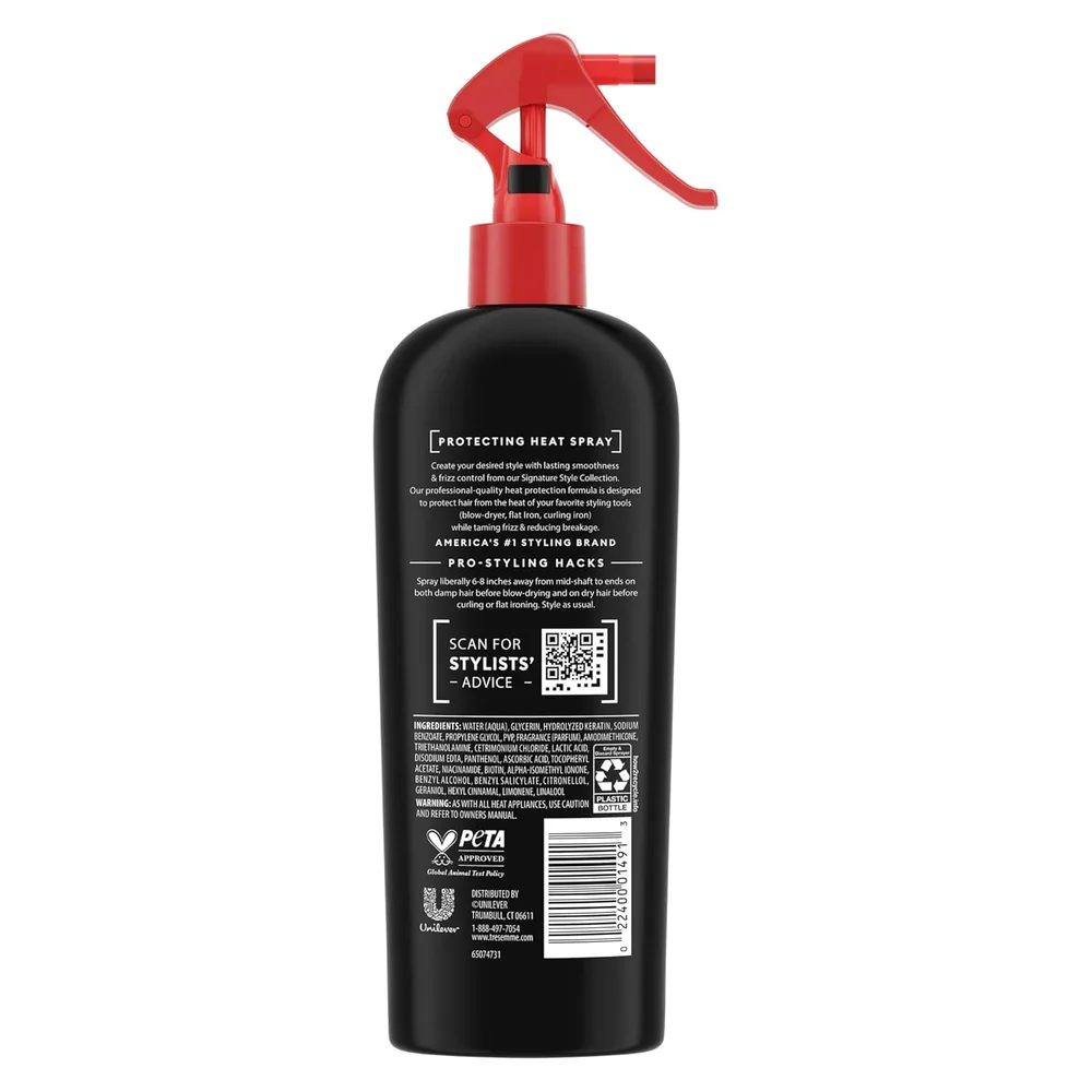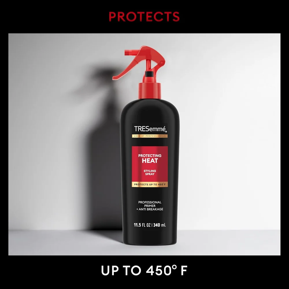 TRESemmé Protecting Heat Styling Spray is designed to protect hair against breakage and from the heat of your favorite styling tools up to 450° F. This weightless heat protectant leaves hair with lasting smoothness and frizz